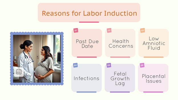 There’s a need for labor induction when pregnancy risks emerge as labor induction naturally or medically becomes necessary. Serious maternal health issues, such as gestational diabetes, prompt this choice. An overdue pregnancy poses health risks for the baby, requiring swift intervention.